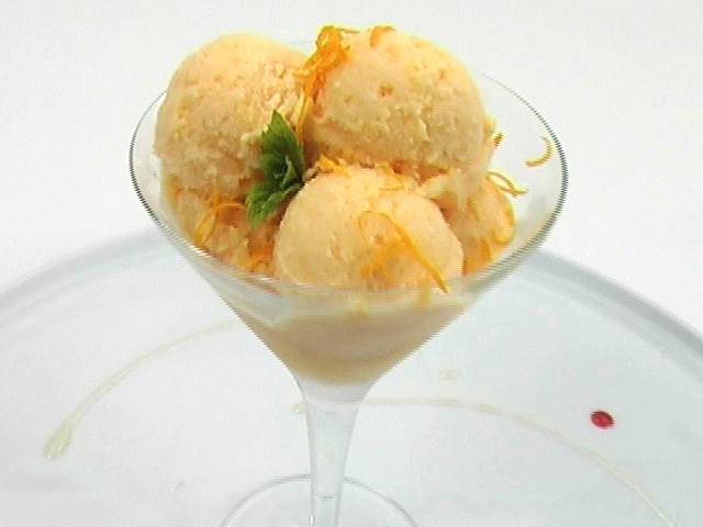 Как приятно в жаркий летний день съесть апельсиновое мороженое!Состав:желтки — 6 штук;цедра двух апельсинов;сок двух апельсинов;апельсиновый ликер — 50 гр;сливки — 1 стакан;сахар — 150 гр.